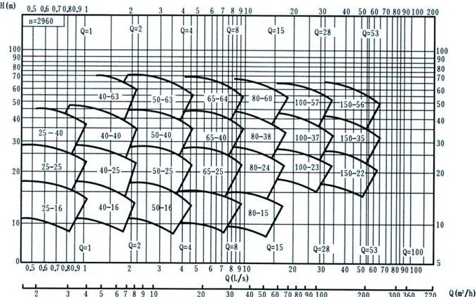 型號 | 流量 | 揚(yáng)程 | 配用電機(jī) | 轉(zhuǎn)速 | 效率η | 軸功率 | 汽蝕余量 |