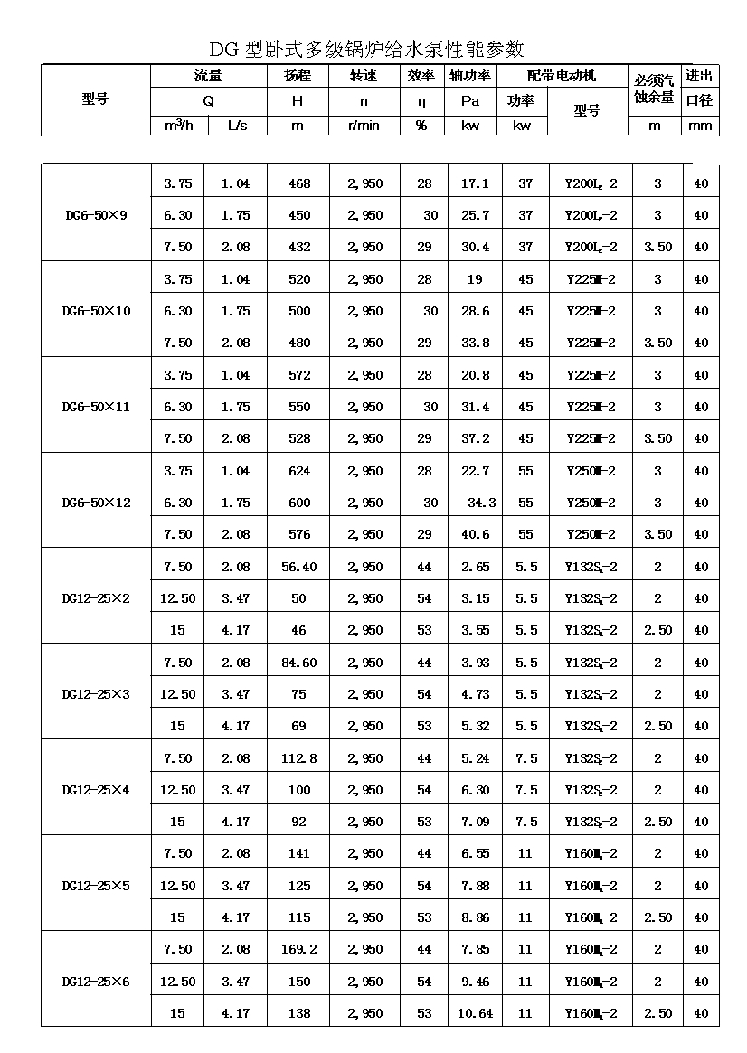 DG型鍋爐給水泵是臥式單級多吸分段式離心水泵。供吸送清水(含雜質(zhì)量小于1%,顆粒度小于0.1mm)及物理化學(xué)性質(zhì)類似于清水的液體之用。輸送介質(zhì)溫度不高于105攝氏度,適用于小型鍋爐給水及城鎮(zhèn)供水等場合。DG型鍋爐給水泵屬國家經(jīng)委、機(jī)電部聯(lián)合推廣的節(jié)能產(chǎn)品,用來代替GC型鍋爐給水泵,其效率平均比GC型高8%,敬請用戶優(yōu)先選用。
