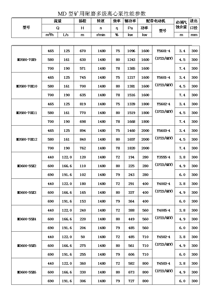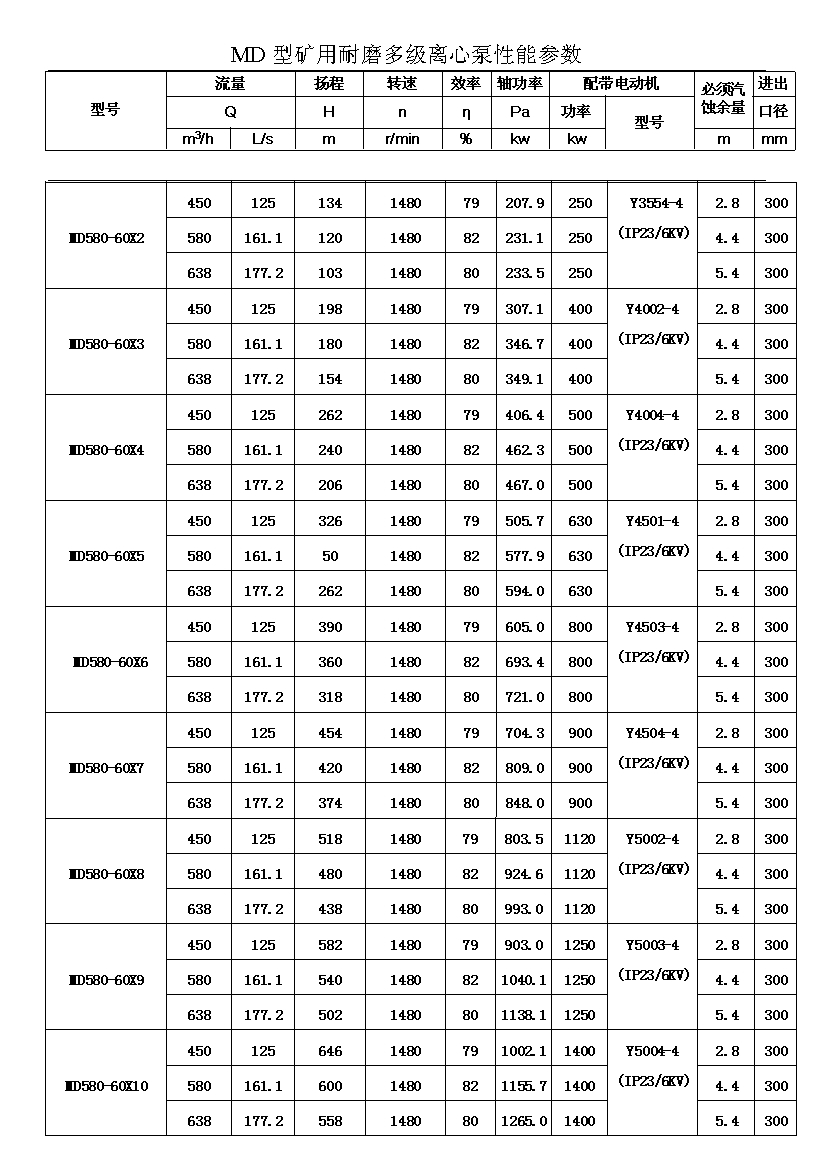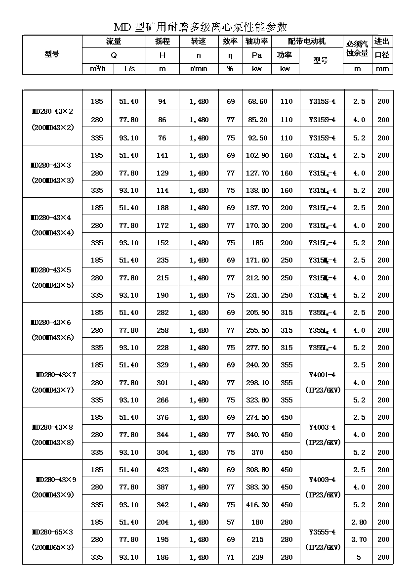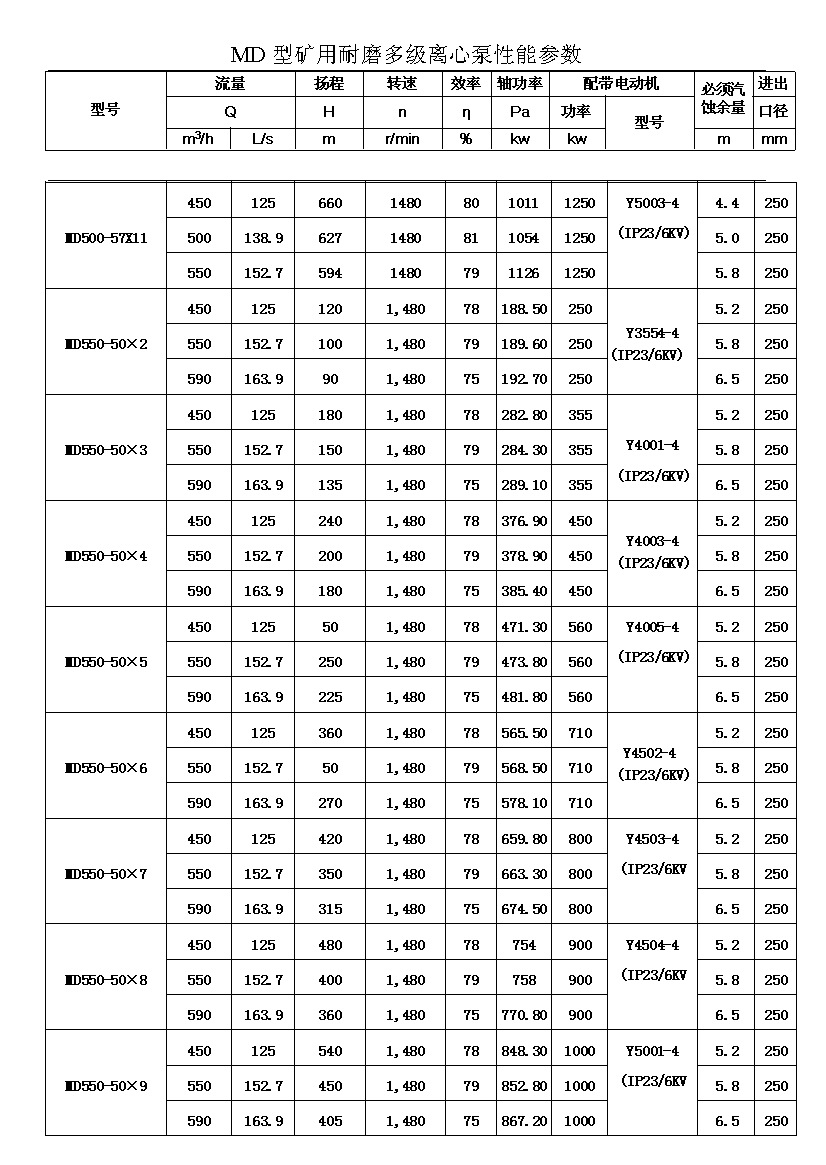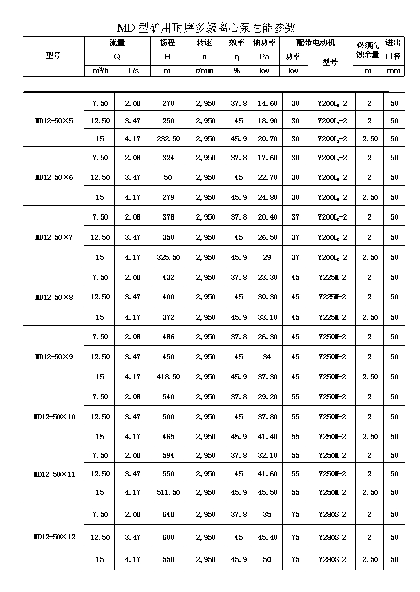 MD型耐磨多級離心泵,是我公司在D型單吸多級清水離心泵的基礎上,改造設計的一種耐磨多級離心泵。MD型耐磨多級離心泵,高效節能,耐磨可靠,壽命長, 特別適用于礦山排水,抽送固體顆粒含量不大于1.5%(顆粒直徑小于0.5毫米)的礦井水及其他類似液體,液體溫度不高于80度。